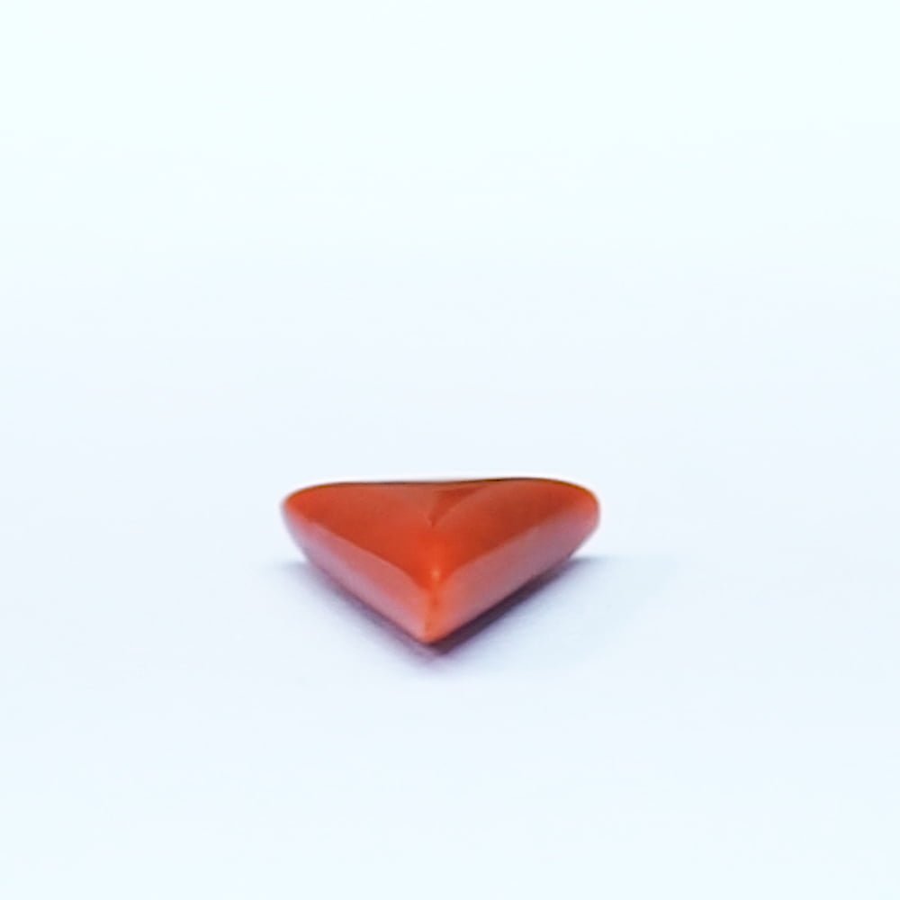 Red coral is formed by a genus of marine coral called Corallium. Precious coral can be distinguished from other corals through their intense red or pinkish-orange color. Red coral gems or Moonga is important in Vedic astrology because of their association with Mars or Mangal. Moonga has healing qualities that help in mental illnesses and also help in boosting confidence. Moonga is recommended for people who have issues regarding anger, emotions, and expressing themselves. It is also known for its positive influence on a person's aura. It helps in warding off evil and negative energies. Always buy the best quality Red Coral to achieve desired results. Ratna Bhagya provides you with 4.55 Carat (4.9595 Ratti) red coral that will help you achieve your goals and realize your dreams.”