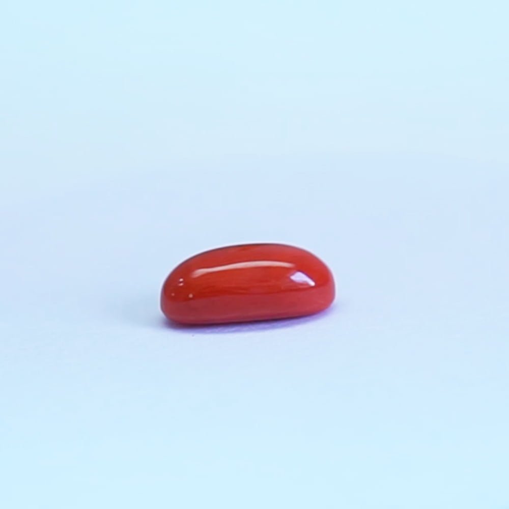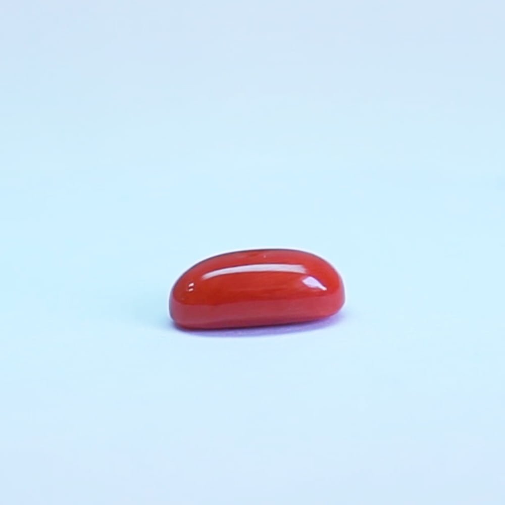 Red coral is formed by a genus of marine coral called Corallium. Precious coral can be distinguished from other corals through their intense red or pinkish-orange color. Red coral gems or Moonga is important in Vedic astrology because of their association with Mars or Mangal. Moonga has healing qualities that help in mental illnesses and also help in boosting confidence. Moonga is recommended for people who have issues regarding anger, emotions, and expressing themselves. It is also known for its positive influence on a person's aura. It helps in warding off evil and negative energies. Always buy the best quality Red Coral to achieve desired results. Ratna Bhagya provides you with 7.99 Carat (8.7091 Ratti) red coral that will help you achieve your goals and realize your dreams.”
