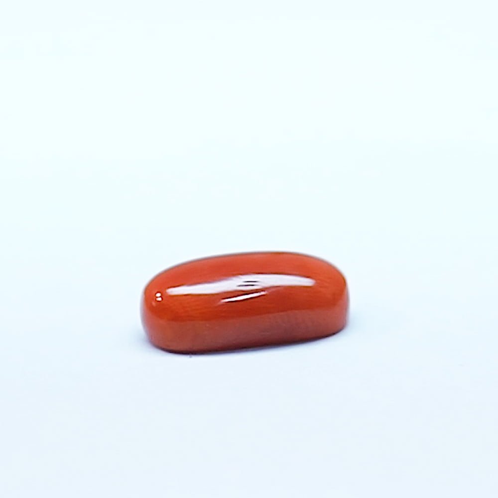Red coral is formed by a genus of marine coral called Corallium. Precious coral can be distinguished from other corals through their intense red or pinkish-orange color. Red coral gems or Moonga is important in Vedic astrology because of their association with Mars or Mangal. Moonga has healing qualities that help in mental illnesses and also help in boosting confidence. Moonga is recommended for people who have issues regarding anger, emotions, and expressing themselves. It is also known for its positive influence on a person's aura. It helps in warding off evil and negative energies. Always buy the best quality Red Coral to achieve desired results. Ratna Bhagya provides you with 8.44 Carat (9.1996 Ratti) red coral that will help you achieve your goals and realize your dreams.”