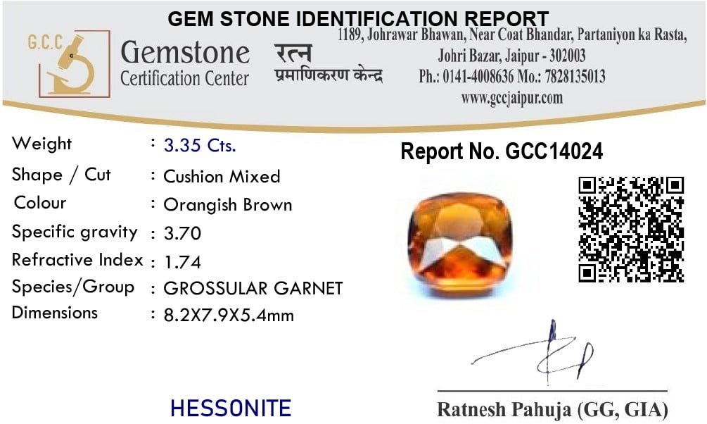 GET DIRECTIONRatan Bhagya's Hessonite gems or Gomed stones are handpicked, flawlessly cut, and polished into a perfect geometric shape. The weight of the stone is 3.35 Carat (3.6515 Ratti). Gomed helps mitigate the onset of Rahu and solves hindrances in personal as well as professional life.”