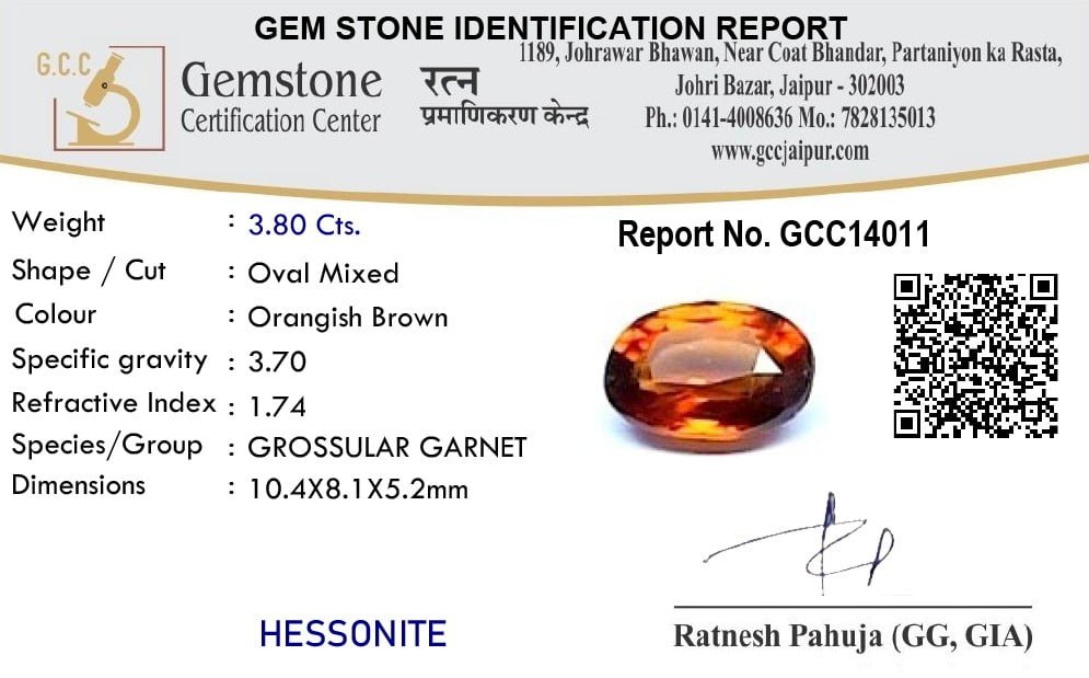 GET DIRECTIONRatan Bhagya's Hessonite gems or Gomed stones are handpicked, flawlessly cut, and polished into a perfect geometric shape. The weight of the stone is 3.8 Carat (4.142 Ratti). Gomed helps mitigate the onset of Rahu and solves hindrances in personal as well as professional life.”