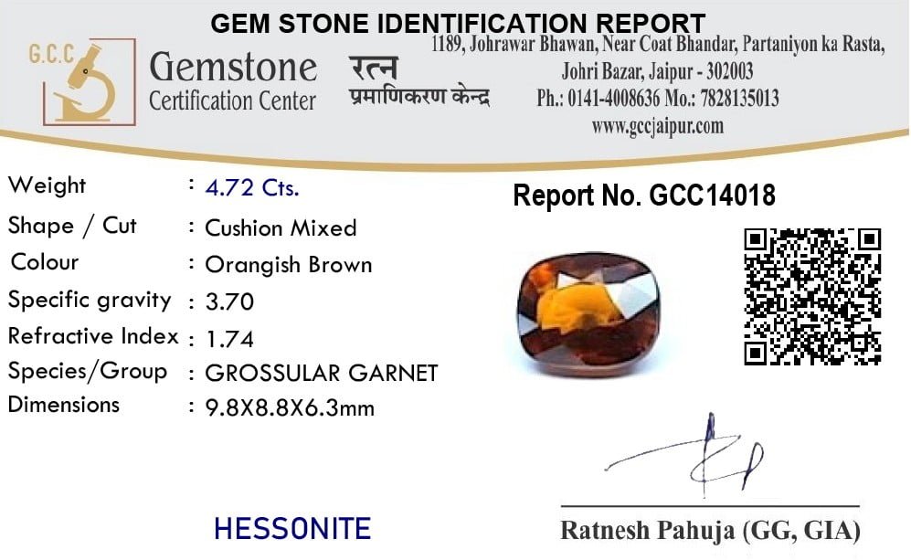 GET DIRECTIONRatan Bhagya's Hessonite gems or Gomed stones are handpicked, flawlessly cut, and polished into a perfect geometric shape. The weight of the stone is 4.72 Carat (5.1448 Ratti). Gomed helps mitigate the onset of Rahu and solves hindrances in personal as well as professional life.”