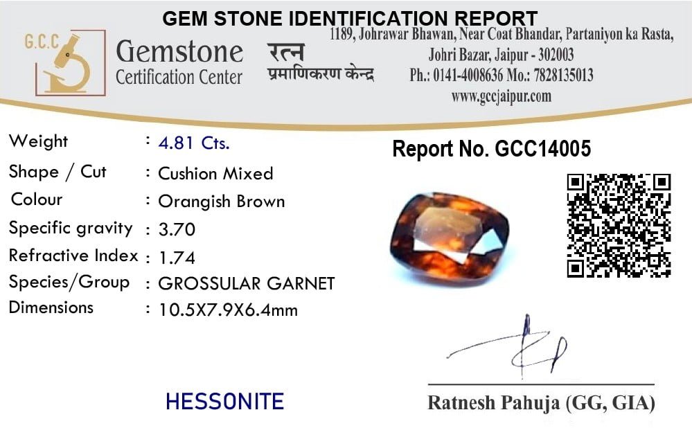 GET DIRECTIONRatan Bhagya's Hessonite gems or Gomed stones are handpicked, flawlessly cut, and polished into a perfect geometric shape. The weight of the stone is 4.81 Carat (5.2429 Ratti). Gomed helps mitigate the onset of Rahu and solves hindrances in personal as well as professional life.”