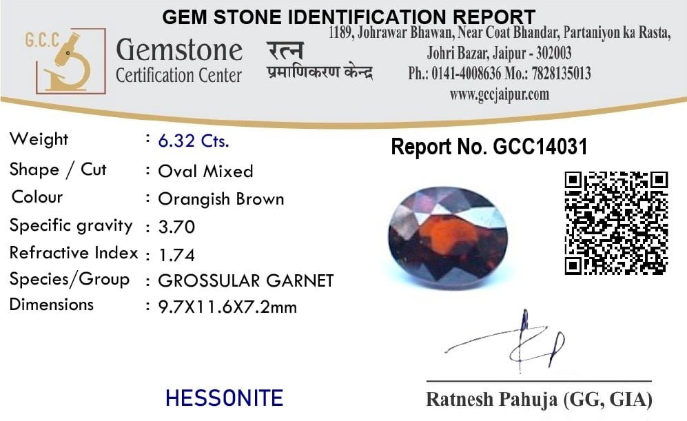 GET DIRECTIONRatan Bhagya's Hessonite gems or Gomed stones are handpicked, flawlessly cut, and polished into a perfect geometric shape. The weight of the stone is 6.32 Carat (6.8888 Ratti). Gomed helps mitigate the onset of Rahu and solves hindrances in personal as well as professional life.”