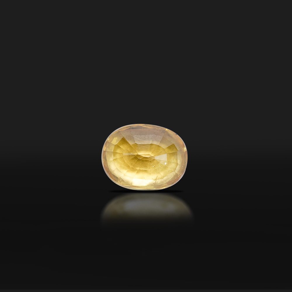 The yellow sapphire is a naturally occurring variant of sapphire. The yellow color comes from the trace amounts of iron and aluminum. Yellow sapphire boosts confidence and grants infinite wisdom. Find perfectly cut and polished 2.81 Carat yellow sapphires at Ratan Bhagya.”
