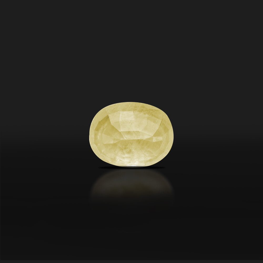 The yellow sapphire is a naturally occurring variant of sapphire. The yellow color comes from the trace amounts of iron and aluminum. Yellow sapphire boosts confidence and grants infinite wisdom. Find perfectly cut and polished 3.46 Carat yellow sapphires at Ratan Bhagya.”