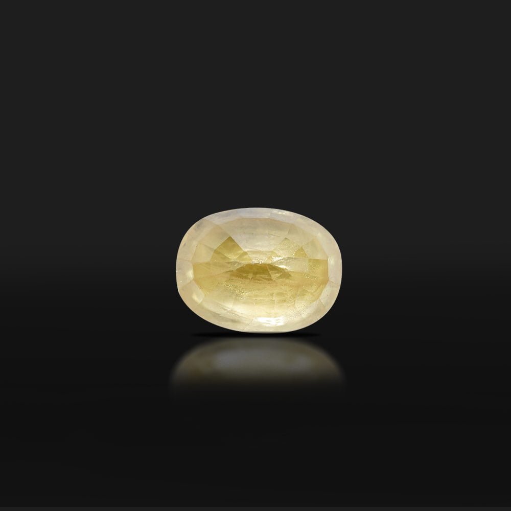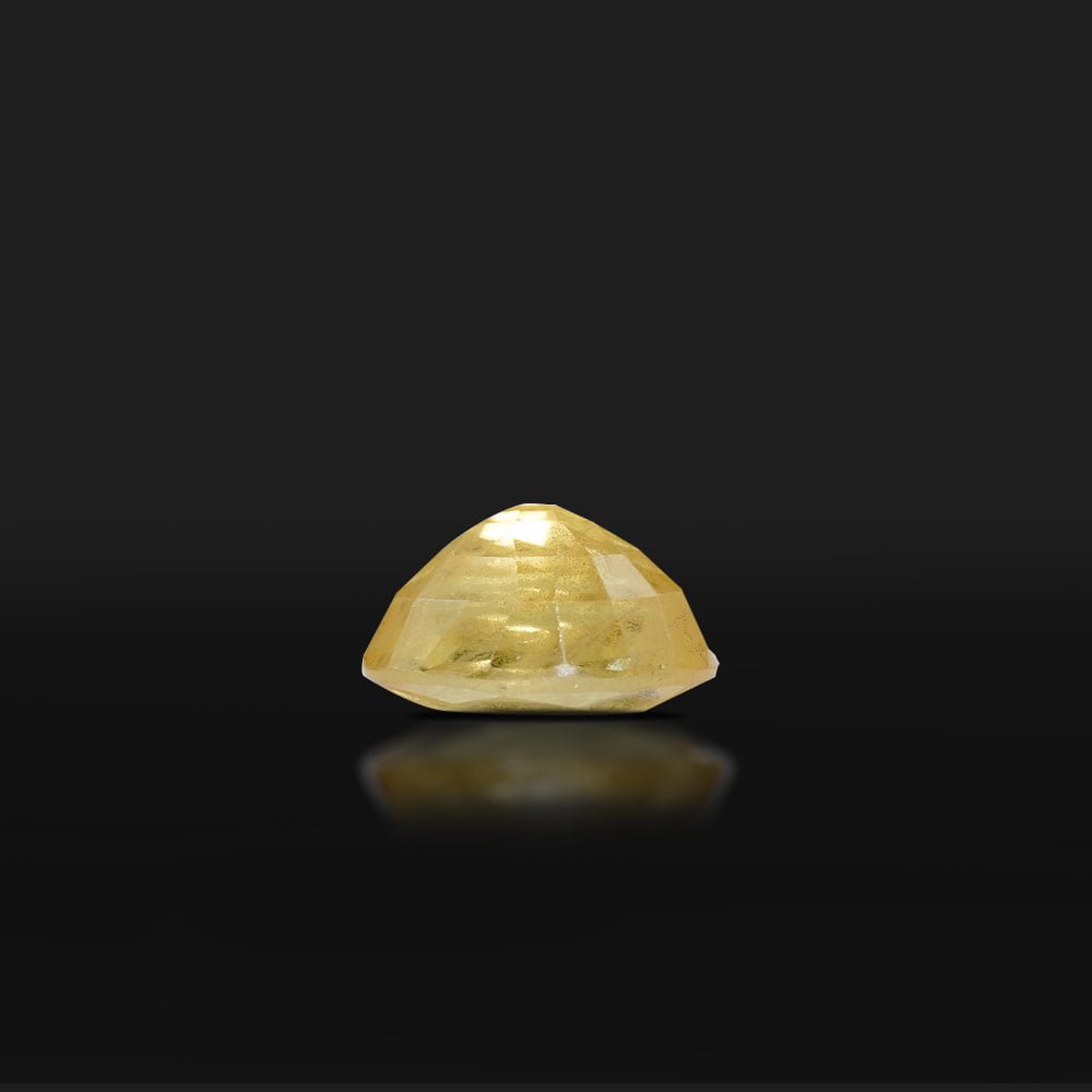 The yellow sapphire is a naturally occurring variant of sapphire. The yellow color comes from the trace amounts of iron and aluminum. Yellow sapphire boosts confidence and grants infinite wisdom. Find perfectly cut and polished 3.47 Carat yellow sapphires at Ratan Bhagya.”