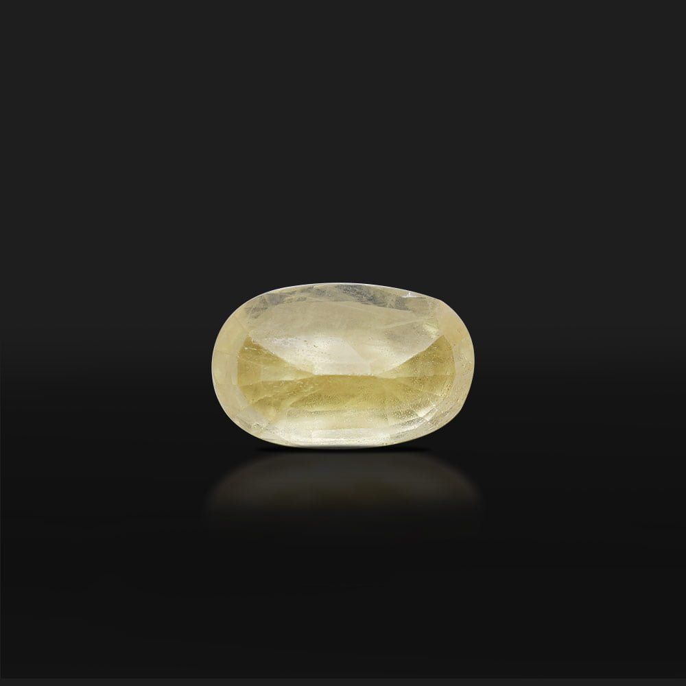 Yellow sapphire is a naturally occurring variant of sapphire in the corundum family. The trace amounts of iron and aluminum in a sapphire contribute to its yellow color. Sapphire is an extremely hard and durable stone and influences the mighty Jupiter. Therefore, Yellow sapphire or Pukhraj is a significant stone in Vedic astrology. It blesses the wearer with great luck, wealth, and happiness. It enables the person to make full use of their concentration and focus, as a result, this stone is heavily recommended for students. It improves decision-making capabilities and boosts confidence. Pukhraj of the best quality helps in healing physical ailments. Problems related to the organs like stomach, lungs, and nervous system are solved using this stone. Find 3.68 Carat yellow sapphire at Ratna Bhagya. We provide the certification of purity and authenticity for the best gemstones.”
