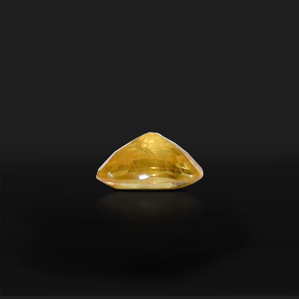 The yellow sapphire is a naturally occurring variant of sapphire. The yellow color comes from the trace amounts of iron and aluminum. Yellow sapphire boosts confidence and grants infinite wisdom. Find perfectly cut and polished 5.25 Carat Carat yellow sapphires at Ratan Bhagya.”
